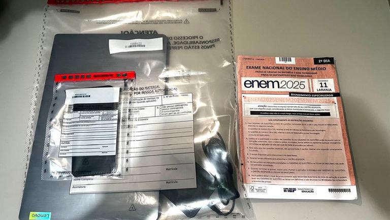 O alvo da operação foi Edcley de Souza Teixeira, estudante de medicina da Universidade Federal do Ceará (UFC). Em imagem divulgada pela PF, dá para ver que foi apreendido um notebook, um aparelho celular e uma prova laranja do 2º dia de Enem 2025.
