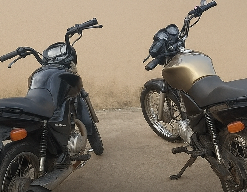 De acordo com os policiais, as duas motocicletas foram encontradas estacionadas em frente a uma residência. No interior do imóvel, os agentes localizaram celulares com indícios de origem ilícita, além de outros objetos de procedência suspeita.