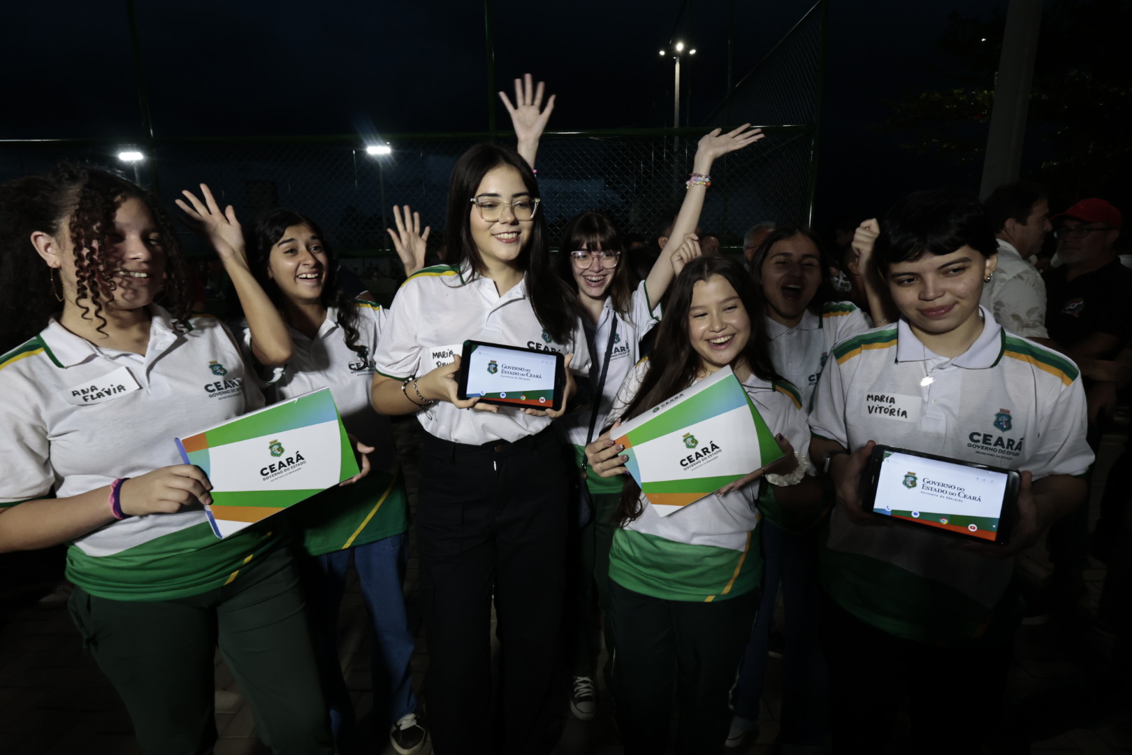 Natural de Ubajara, Maria Vitorya Pontes, 16, fala com propriedade sobre os benefícios que o tablet poderá fazer pelo seu potencial de estudos. “É uma ajuda enorme, principalmente na questão dos estudos online, à distância. Vai mudar minha rotina pra melhor e me auxiliar a chegar no meu sonho: cursar direito e me tornar perita criminal”, contou com alegria.