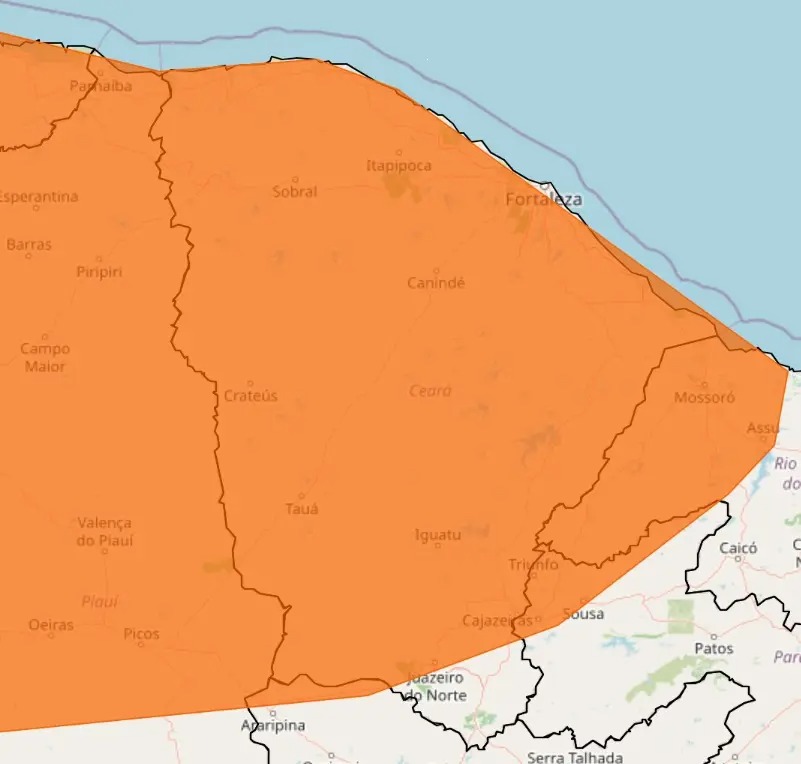 Várias cidades da Serra da Ibiapaba estão, sim, dentro do alerta “laranja” de chuvas intensas emitido pelo Inmet para o Ceará.